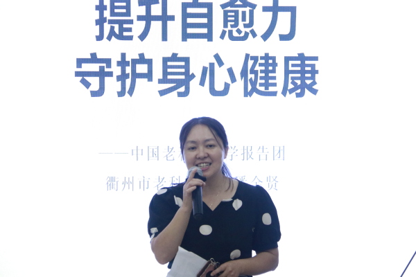 衢州市老科协专家、主任医师、原衢州市人民医院院长潘金贤同志为大家做“提升自愈力 守护身心健康”专题讲座。潘院长以自身多年的工作经验、真实案例和数据,详细介绍了什么是自愈力,如何提高人体自愈力和免疫力,以及慢性病的管理需要注意的事项等。讲座内容丰富且实用,对退休教职工的健康生活提供了针对性很强的科学指导。